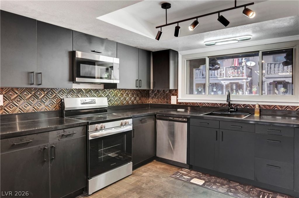 BEAUTIFUL 3 BEDROOM, 3 BATH, 3 STORY TOWNHOME WITH AN ATTACHED 2 CAR GARAGE. THIS WELL KEPT HOME FEATURES, TILE AND LUXURY VINYL/WOOD LAMINATE FLOORING THROUGHOUT, CEILING FANS. MODERN KITCHEN WITH STAINLESS STEEL APPLIANCES ALL ELECTRIC, GRANITE COUNTERTOPS, AND GREAT CABINET SPACE. SPACIOUS PRIMARY BEDROOM WITH A AND PRIVATE BALCONY. BOTH UPSTAIRS BEDROOMS OFFER THEIR OWN ATTACHED BATHROOMS, PERFECT FOR GUESTS OR MULTI GENERATIONAL LIVING. SEPARATE LAUNDRY ROOM LOCATED ON THE FIRST FLOOR. COVERED ENTRY BALCONY, FUNCTIONAL LAYOUT, AND MOVE IN READY. CONVENIENTLY LOCATED NEAR FREEWAY ACCESS, THE LAS VEGAS STRIP, SHOPPING, DINING, AND SCHOOLS. A MUST SEE!